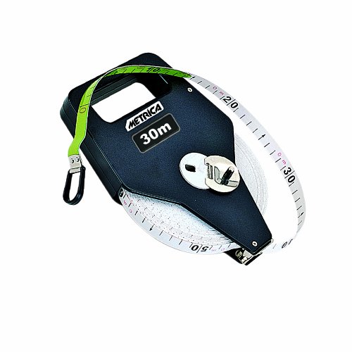 Metrica 40055 Triple décamètre 30 m x 16 mm Boitier ABS ouvert Manivelle en métal Classe III, Éditeur: Metrica 40055 Triple décamètre avec poignée.