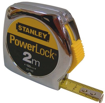 Mètre ruban 5 mx19 mm POWERLOCK. Ruban de mesure STANLEY Powerlock 5 m. Ruban très large et cambré, donc très rigide.